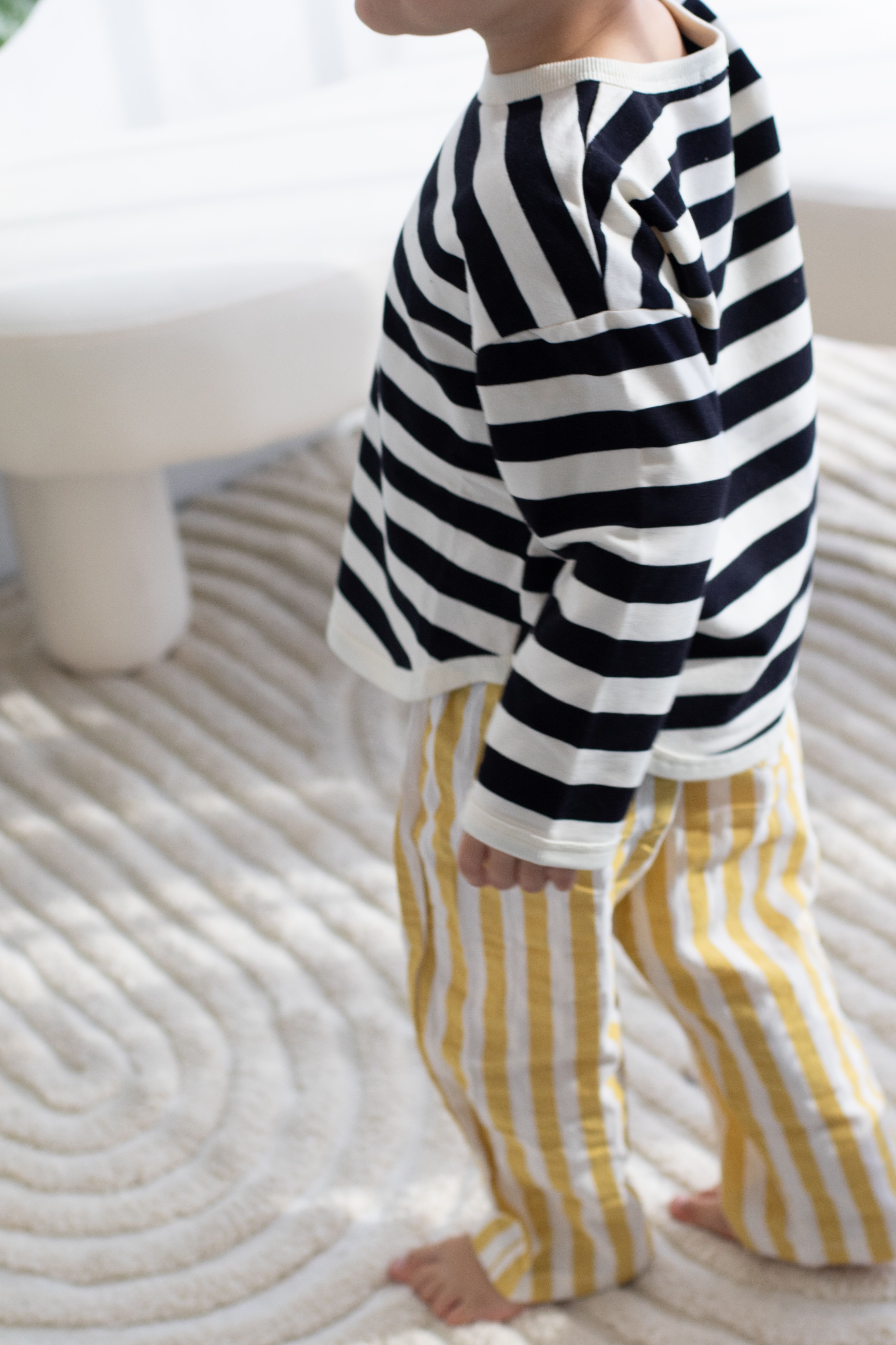 Lennox long sleeve tee is soft & lightweight with long sleeves and crew neck for a comfy relaxed fit. Cream in colour with either black or brown stripes horizontal stripes.